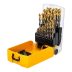 Набор Denzel Golden Tip 723010 состоит из 25 сверл по металлу диаметром 1-13 мм, изготовленных из стали P6M5K8. Угол заточки составляет 135°, что позволяет получать чистые и ровные отверстия в закаленной и нержавеющей стали, цветных и черных металлах, а также жестком пластике. Сверлам присвоен класс точности A1, что гарантирует высокое качество выполняемых работ. Оснастка характеризуется пониженным коэффициентом трения, что облегчает сверление и улучшает отвод стружки. Набор будет полезен дома и в мастерской.
